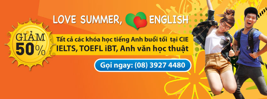 Cùng “chơi thật vui, học thật thích” với chương trình Love Summer, Love English tại Trung tâm Đào tạo Quốc tế - ĐHQG TP.HCM (CIE). Giảm 50% học phí tất cả các khóa học tiếng Anh buổi tối. Mùa hè chưa bao giờ tưng bừng đến thế!